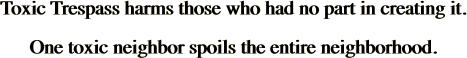 Shocking as it may seem, in residential districts it is currently not illegal (or not enforced) to discharge such a large quantity of a toxic product so as to injure another party. Many residents in the City of Oakland choose to live without toxic products, since such products are known to cause cancer, birth defects, neurotoxic effects, and immune dysfunction; but due to drift are subjected to their neighbor's toxic products without consent. Some roll their eyes, but if the family of a lung cancer victim were advocating second hand smoke ordinances, would they appreciate it or roll their eyes? Many legal products, on the market today, are toxic. For some categories of products, reading the label or MSDS sheet helps to understand the adverse human health effects. We are all familiar with products that have come off of the market; and all too often people believe that no more dangerous products are left on the market. In fact, products come off the market regularly because their adverse health effects become publicly known. StopToxicTrespass.org exists to sponsor legislation which is fair to all sides and which protect people from toxic trespass. |